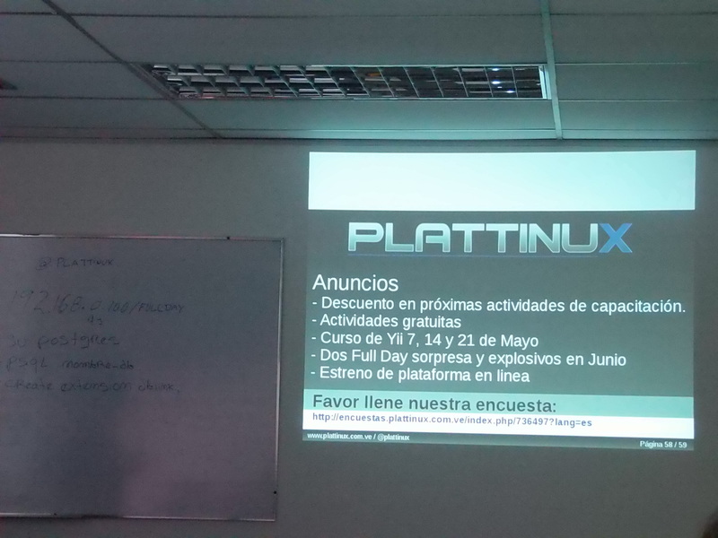 Si asististe al Full Day PostgreSQL y quieres que tus fotos sean publicadas aquí o en nuestras redes sociales, envíennoslas a contacto@plattinux.com